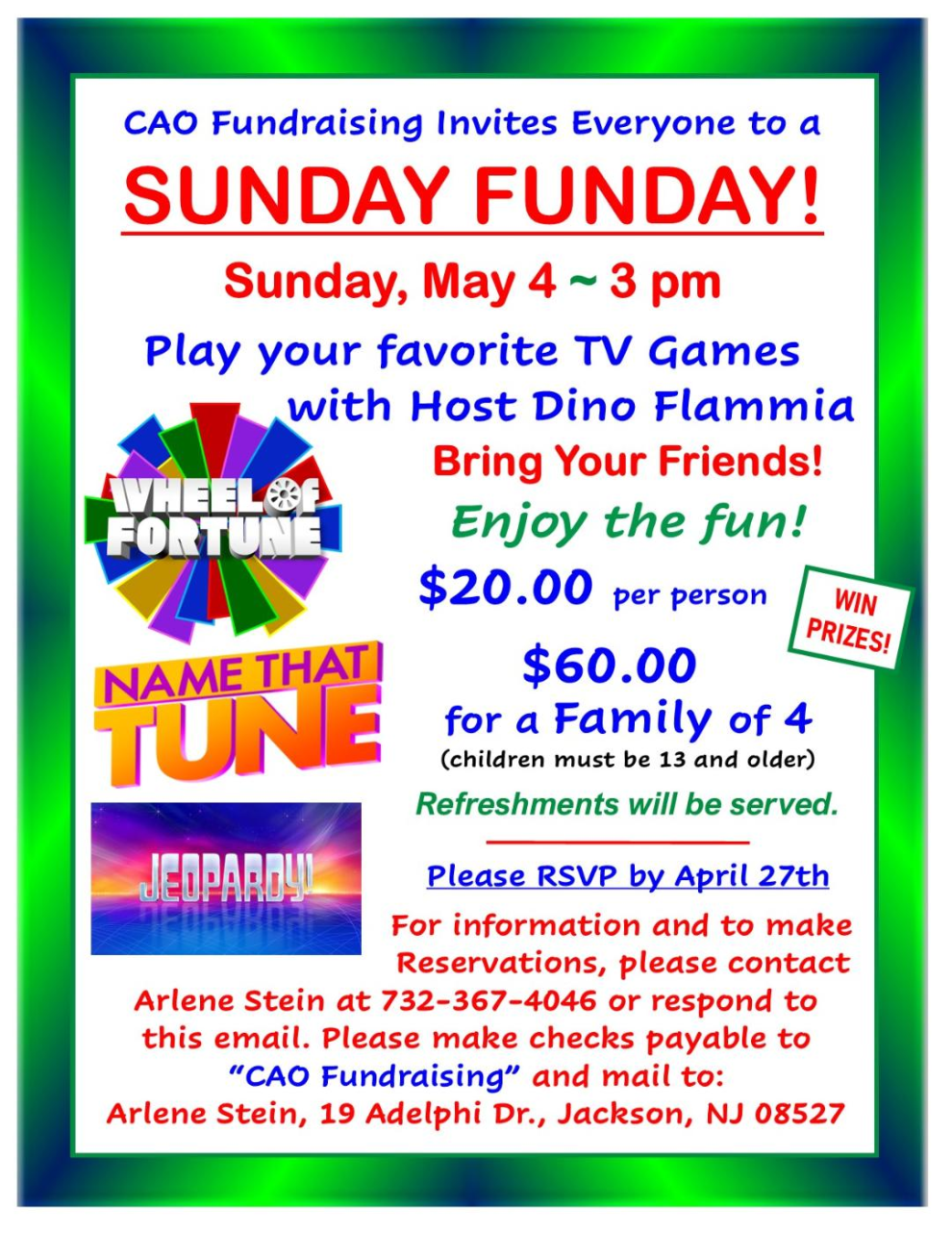 See flyer for details or call Arlene Stein 732-367-4046
