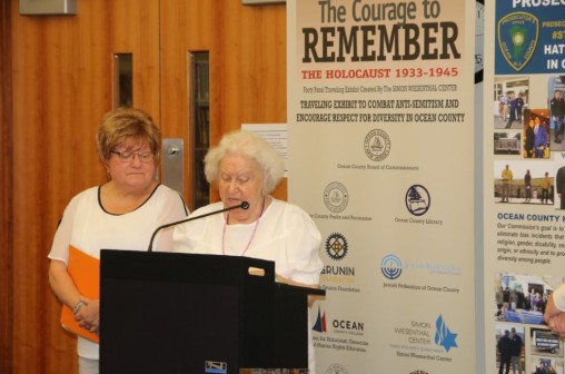 As part of the opening of the exhibit at the Toms River Library, Esther Feder-Lesell (pictured with her daughter Rita) shared her experience during the Holocaust.