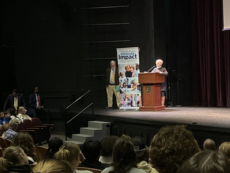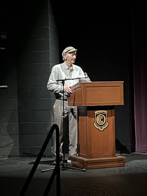 Manny Lindenbaum addresses the students