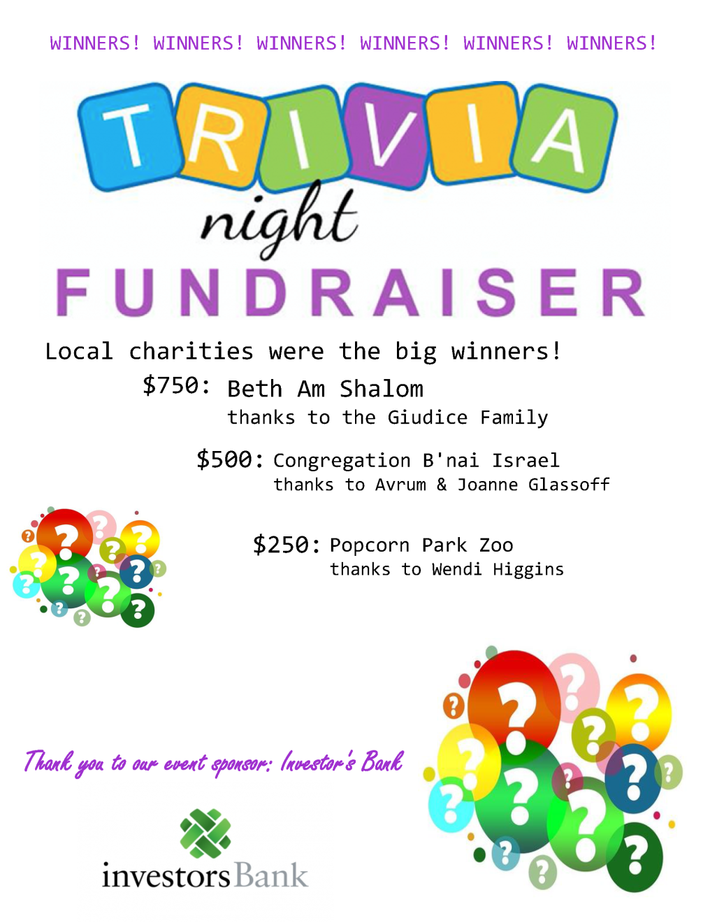 Congratulations to everyone for helping our local nonprofits!